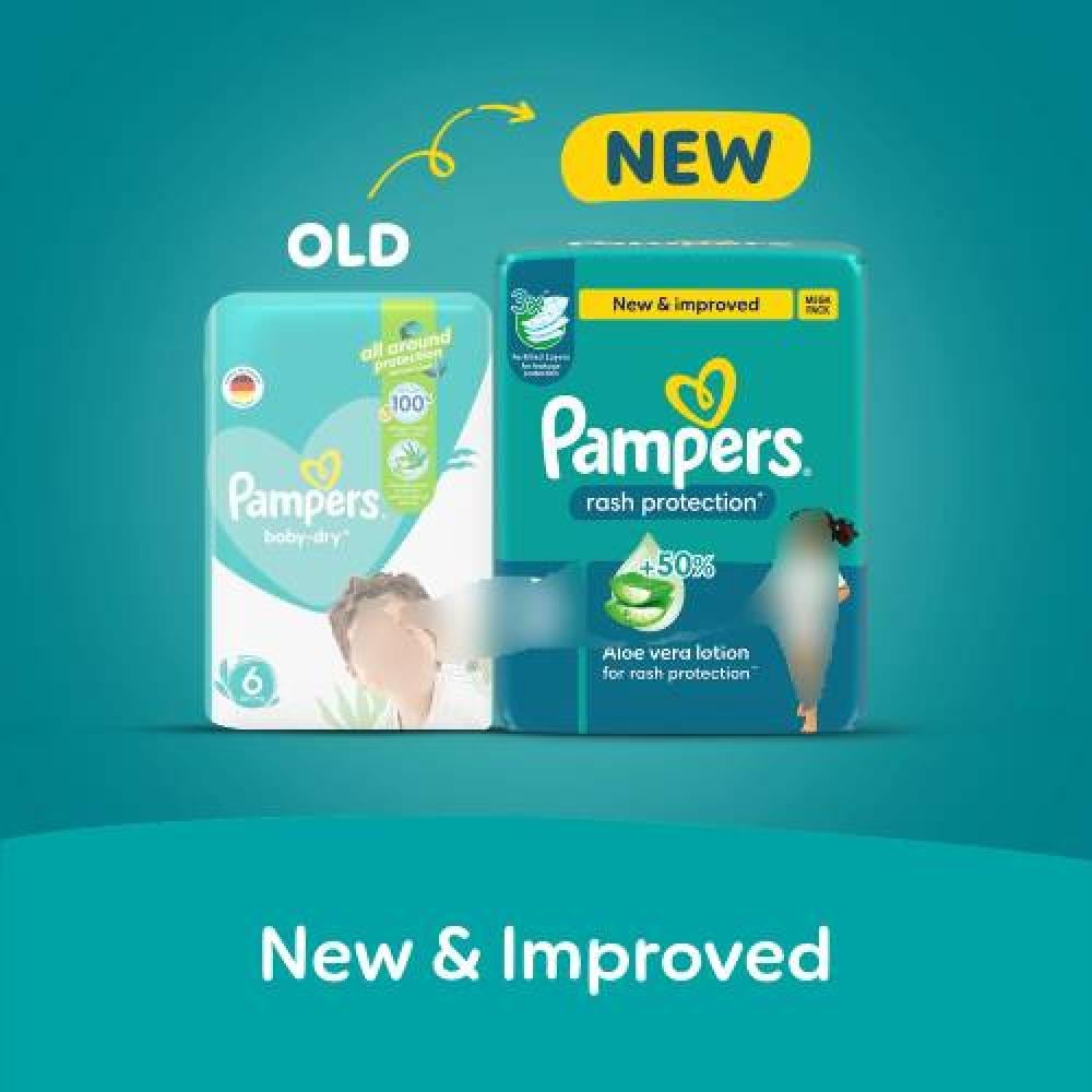 - إن حفاضات بامبرز بيبي دراي أصبحت بامبرز الجديدة والمطورة للحماية من التسلخات. ينتج التسرب عادة عن كون حجم الحفاض غير مناسب، مما يؤدي إلى تهيج البشرة. إن هذه الحفاضات متوفرة بمقاس 4 للحماية الفائقة من التسرب. وهي مزوّدة بـ3 طبقات معززة و+50% كريم صبار أكثر لتهدئة البشرة. تحتوي الحفاضات على حواجز مزدوجة لمنع التسرب ومواد مرنة لضمان ملاءمة أفضل، مما يسمح لطفلك بالحركة بحرية.