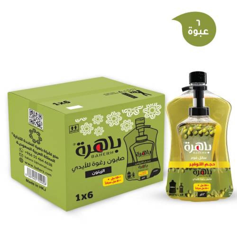 كرتون صابون سائل رغوة للأيدي "باهرة بالزيتون"، يحتوي على 6 ربطات، كل منها بحجم 1500 مل مع 500 مل مجانًا. يتميز بتركيبته الفريدة التي تجمع بين التنظيف العميق والرغوة الناعمة، مما يمنح اليدين انتعاشًا وترطيبًا مع خلاصة الزيتون الطبيعية التي تدوم طويلًا.