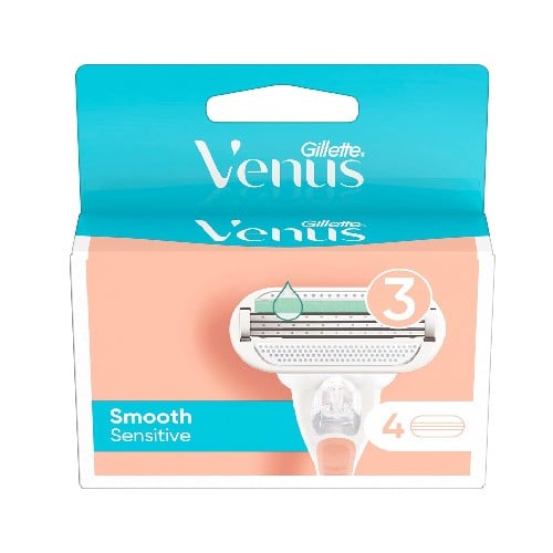 شفرات حلاقة فينوس 3 سموت للبشرة الحساسة من جيليت 4 قطع :