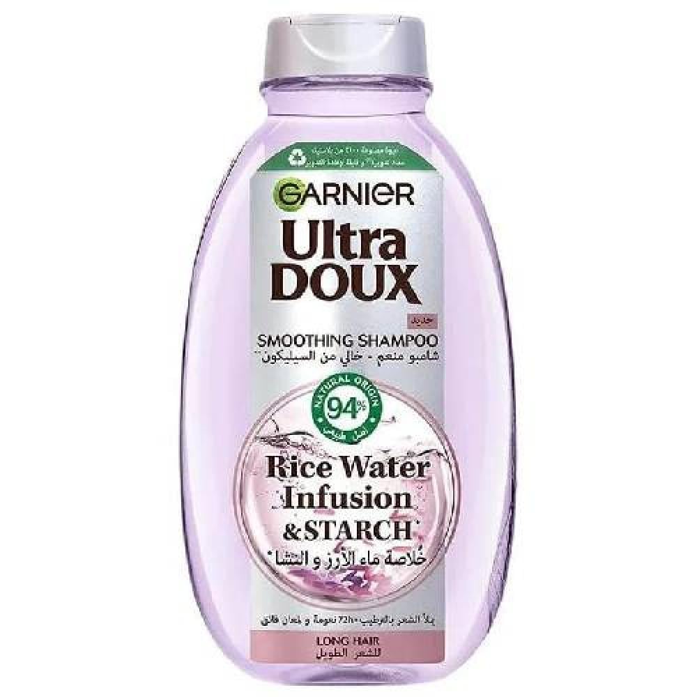 شامبو غارنييه ألترا دوكس بخلاصة ماء الأرز والنشا مصمم خصيصًا لتنظيف وتقوية الشعر، مع تركه ناعمًا وسهل التصفيف. مستوحى من الطقوس الجمالية التقليدية، يحتوي على ماء الأرز والنشا الطبيعي المعروفين بخصائصهما المغذية والحامية. ينظف الشامبو بلطف الشوائب، ويضيف لمسة من اللمعان، ويساعد في تقليل تكسر الشعر، مما يجعله مثاليًا للشعر الهش أو المتضرر.