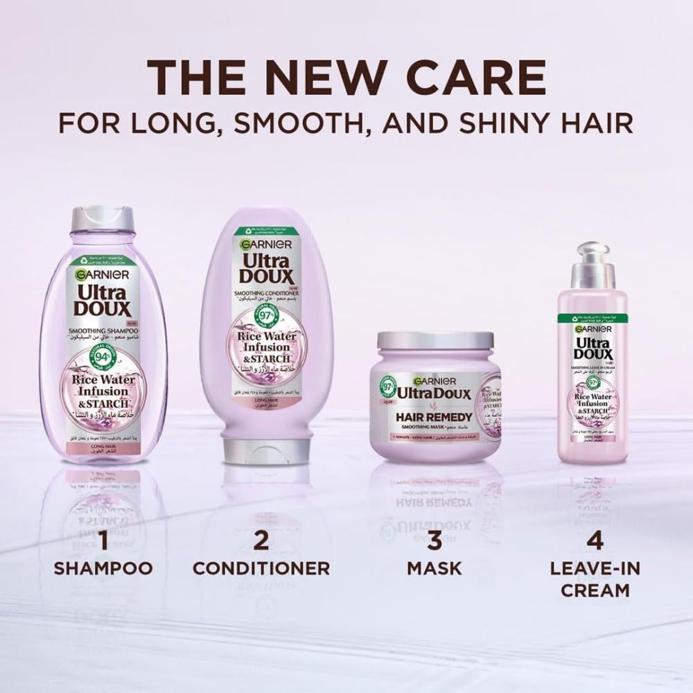 - للحصول على أفضل النتائج، يُفضل استخدام بلسم غارنييه ألترا دوكس بخلاصة ماء الأرز بعد الشامبو.