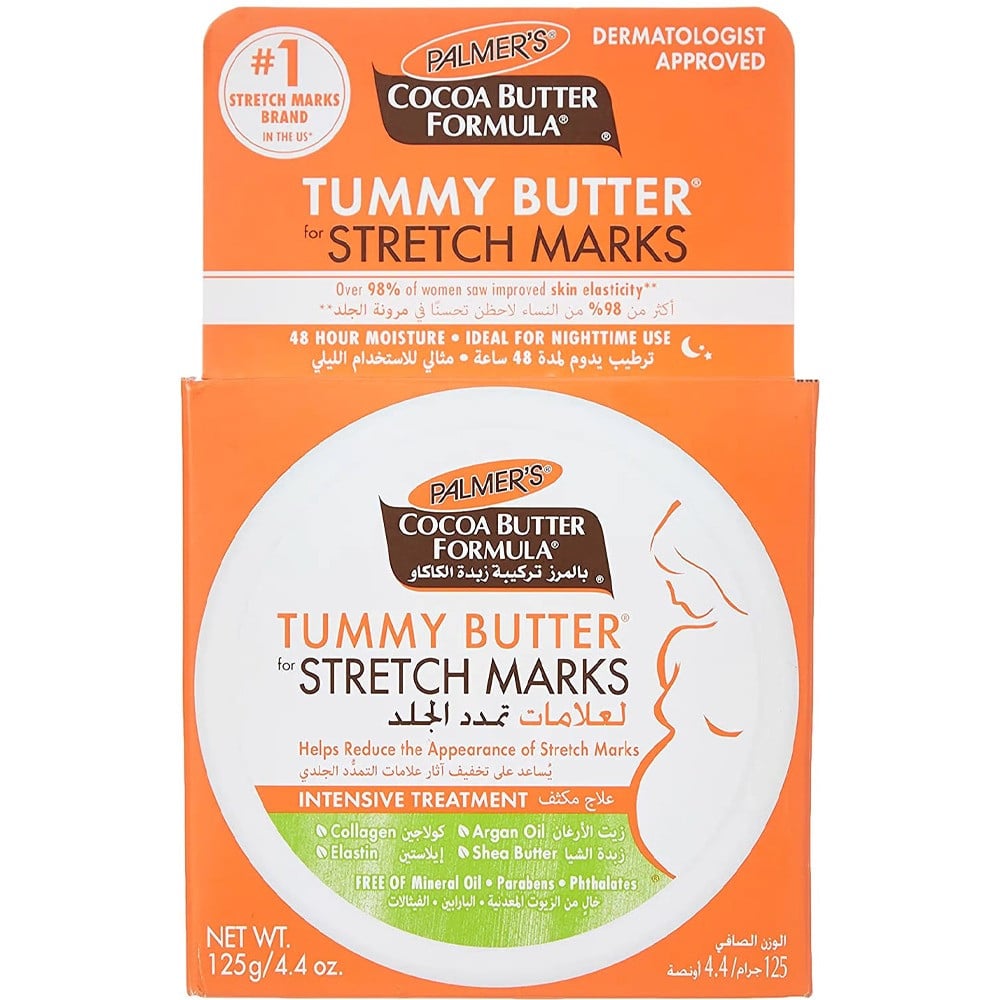 - يوصى على نطاق واسع بتركيبة زبدة البطن المتطورة بزبدة الكاكاو من بالمرز مع Bio C-ElasteTM لعلامات التمدد أثناء الحمل وبعده وفقدان الوزن.