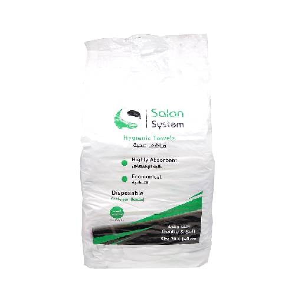 الوصف: احصل على تجربة نظافة شخصية مثالية وراحة استثنائية مع مناشف صالون سيستم الصحية للاستخدام مرة واحدة. هذه المناشف مصممة لتلبية احتياجاتك اليومية بكل نظافة وفعالية، مما يجعلها الخيار الأمثل للاستخدام في الصالونات، السبا، والنوادي الصحية.