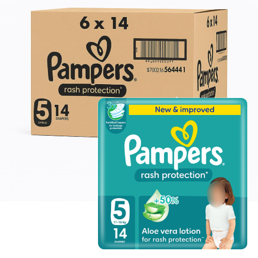 [كرتون] بامبرز حفاضة حماية من التسلخات بالصبار مقاس 5عبوة ميجا - 14حبة × 6 ربطة