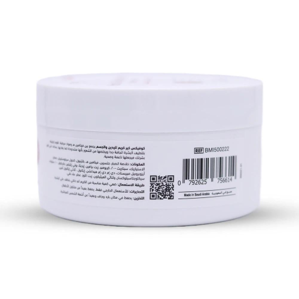 كوفيكس كير كريم لليدين والجسم هو منتج تم تصميمه لتقديم العناية اليومية للبشرة. يحتوي على تركيبة فريدة تجمع بين العناصر المغذية والمرطبة لترطيب البشرة بعمق وتركها ناعمة ومرنة.