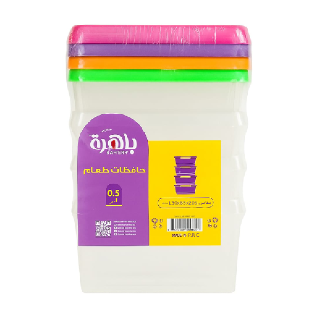 باهرة حافظات طعام بلاستيك 0.5 لتر - 4 قطعة غطاء ملون