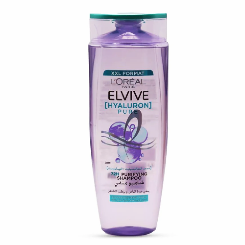شامبو لوريال باريس إلفيف هيالورون بيور يأتي بحجم 600 مل، مصمم خصيصًا للشعر الدهني الذي يعاني من تراكم الزيوت في الجذور وجفاف في الأطراف.